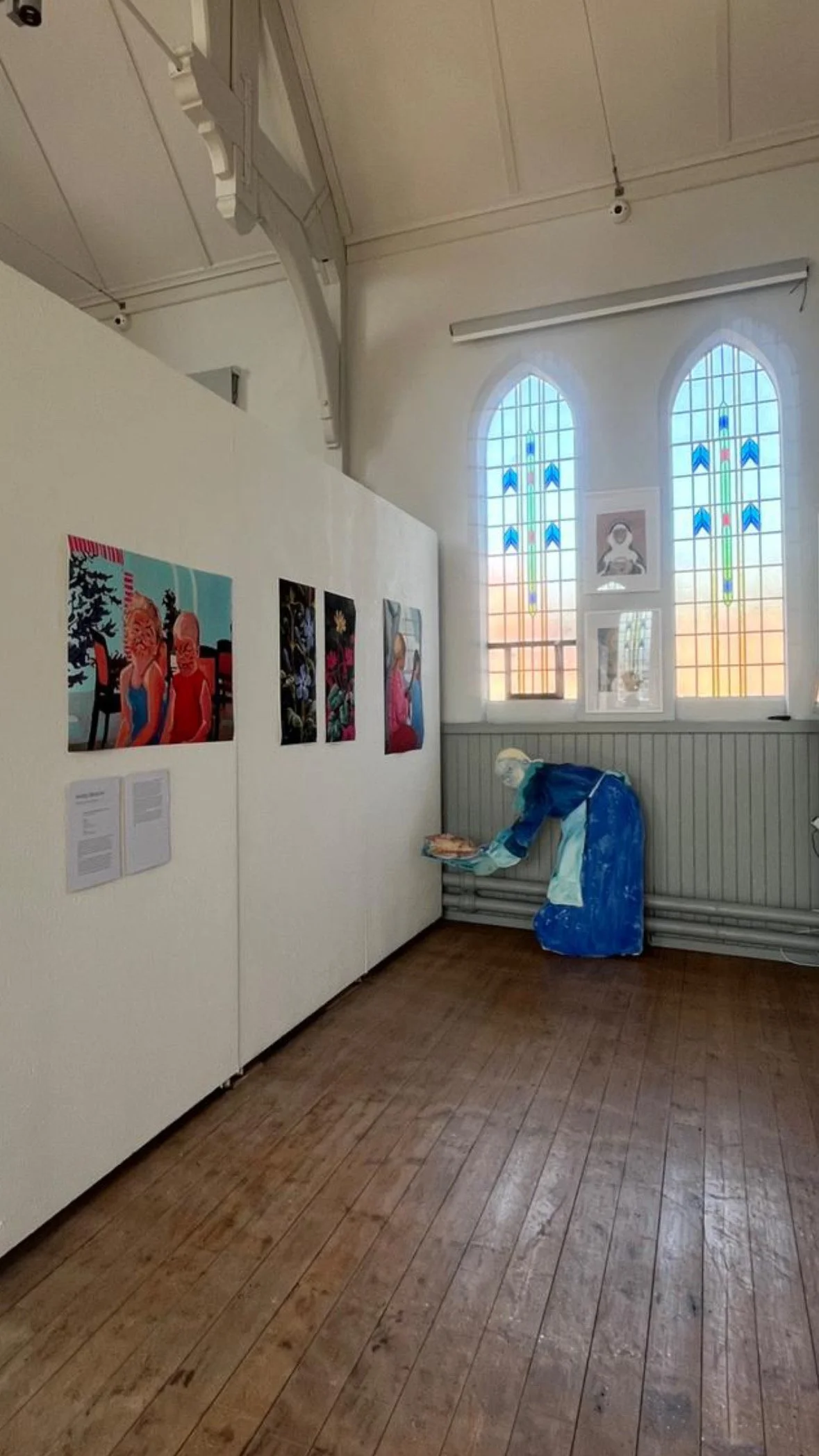 Drawing from inspiration from the three women saints who glow in the church-stained glass – Cecilia, Dorcas and Lydia – the exhibition reflects on creativity as devotion, care, and craft. Each artist brings her own language of colour, movement and myth to the space, showing how art can be rooted in both personal stories and communal exchange.