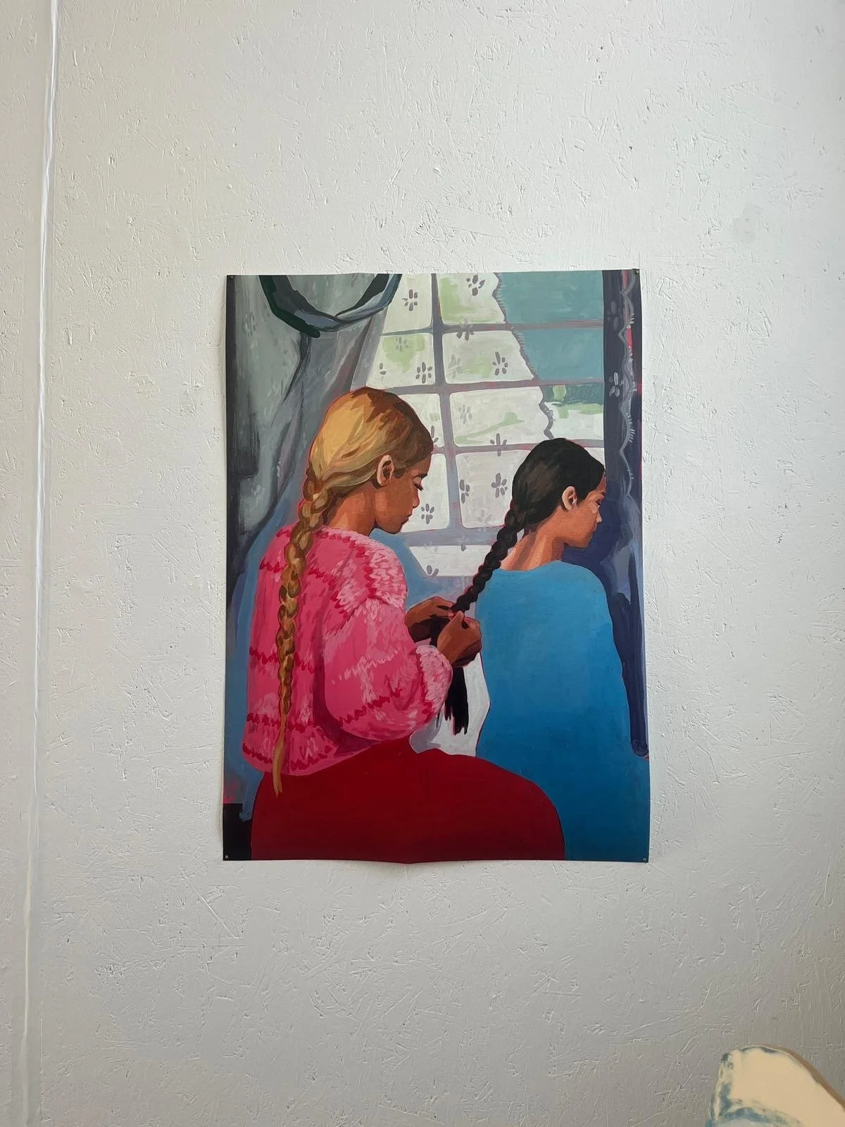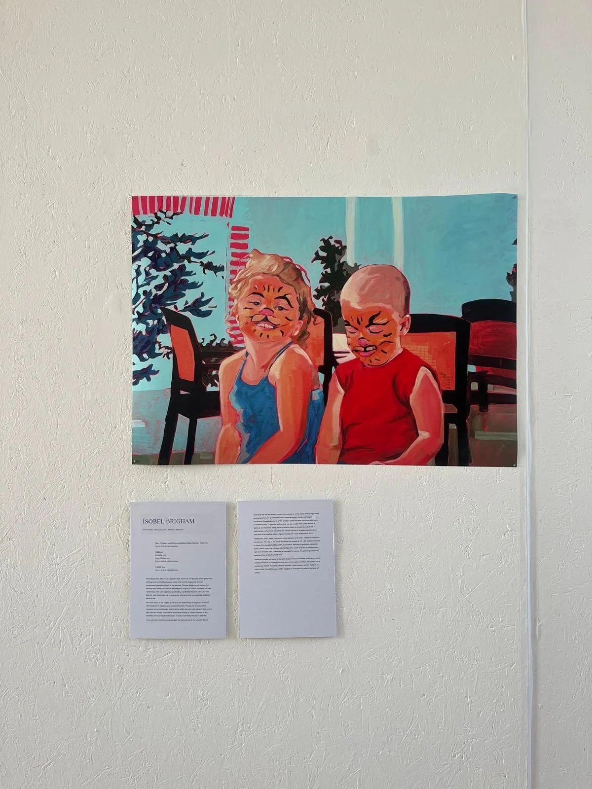 The paintings that I am exhibiting in She Speaks in Colour: Past, Present, Future are, Tigers (Wishing I could hide from adulthood behind funky face paint), 2025, Periwinkle, 2025, Lesser Celandine, 2025 and Untitled (Girls Braiding Hair), 2025. These four paintings are the most recent in my collection, they speak to where I am as an artist. Tigers, is representative of the memories of youth that I believe we all want to cling to a little bit, whereas the Wildflower paintings speak to the generational archives with symbolic nature, begging the audience to reach in and grasp the hidden messages, and the untitled painting is the start of an artistic journey through girlhood, leading into womanhood, understanding what it is to be a ‘girl’ in society. All four paintings are very me and symbolise a new reign across my practice.