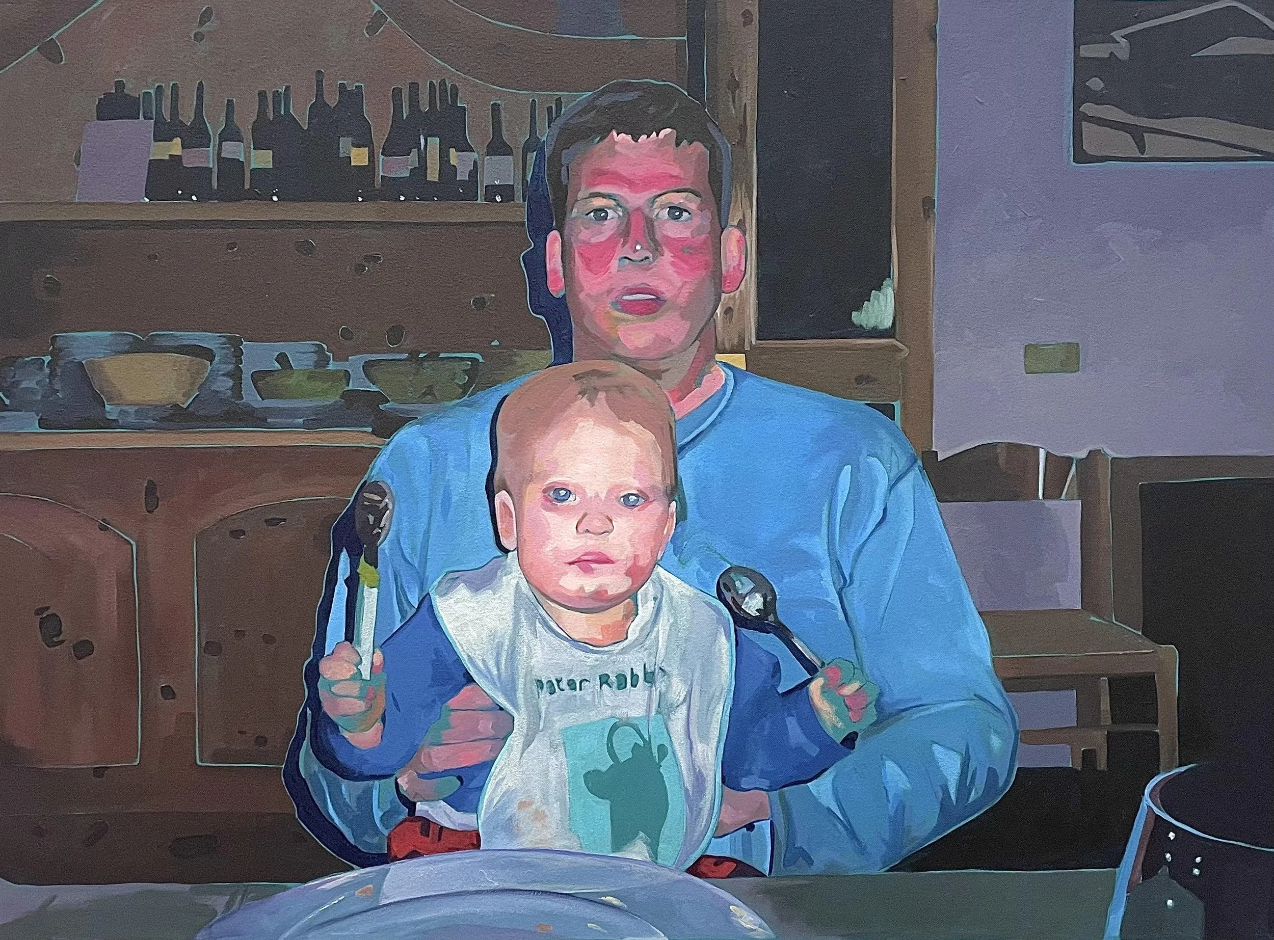 ‘Tigers (Wishing I could hide from adulthood behind funky face paint), 2025. 91cm x 61cm